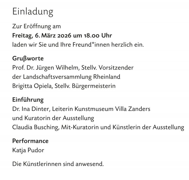 Eröffnung: Freitag, 6. März, 18-21 Uhr